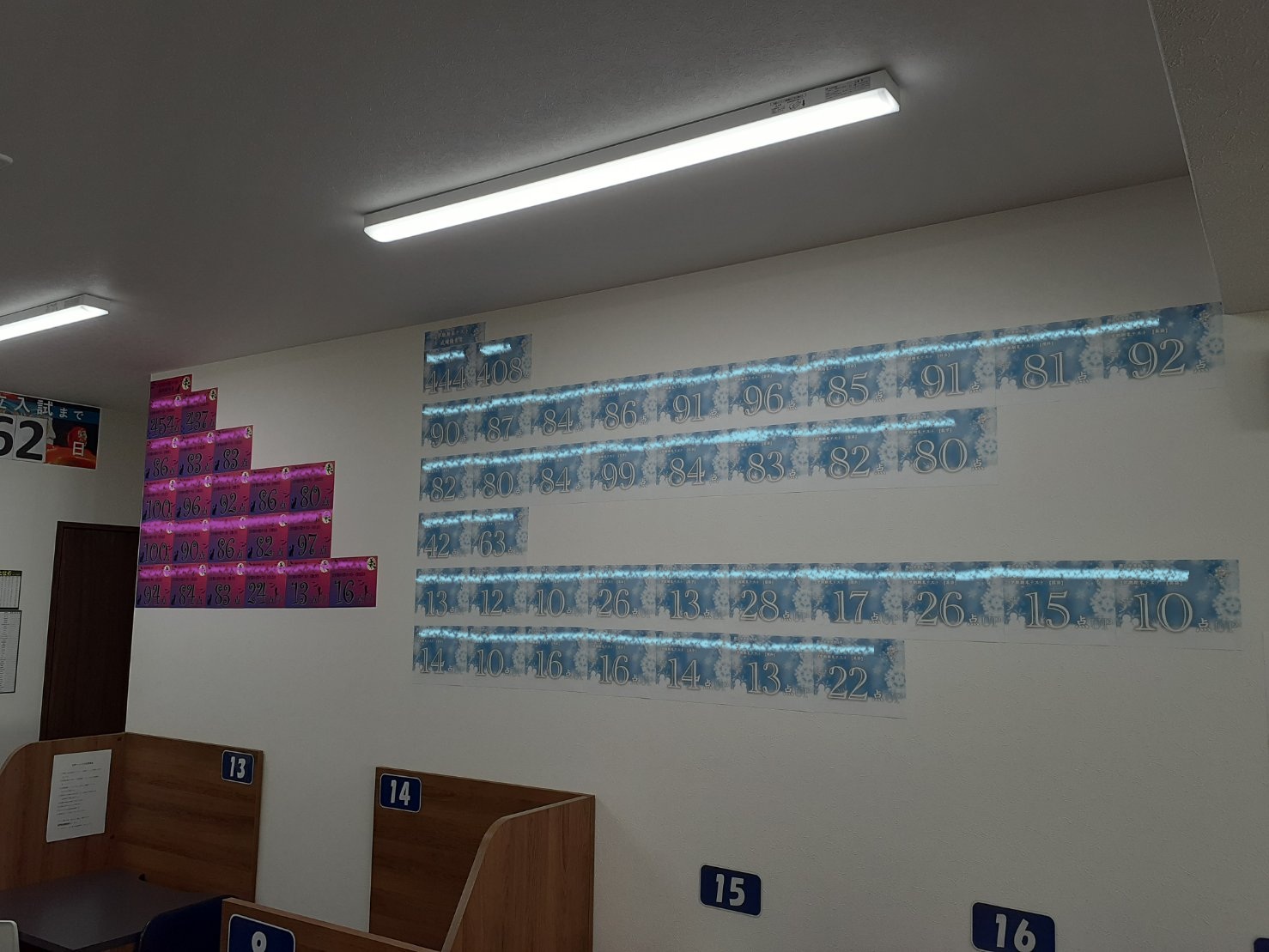 右の水色っぽい冬のソナタ感漂う掲示が2学期期末テストです。