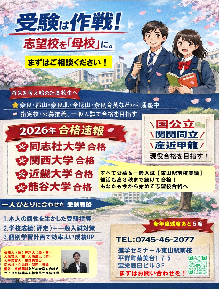 ⇒ 進学ゼミナールで検索!https://nara.shinzemi.co.jp/