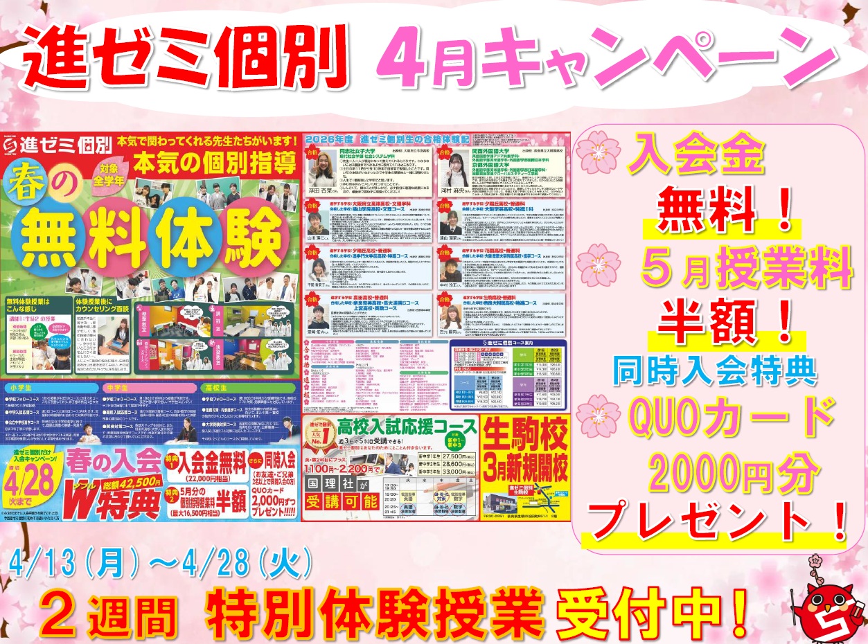 進ゼミ個別東山駅前校公式HP https://kobetsu.shinzemi.co.jp/kousha/higashiyamaekimae TEL:0745-46-2077 公式LINE:https://lin.ee/jmm1fE1