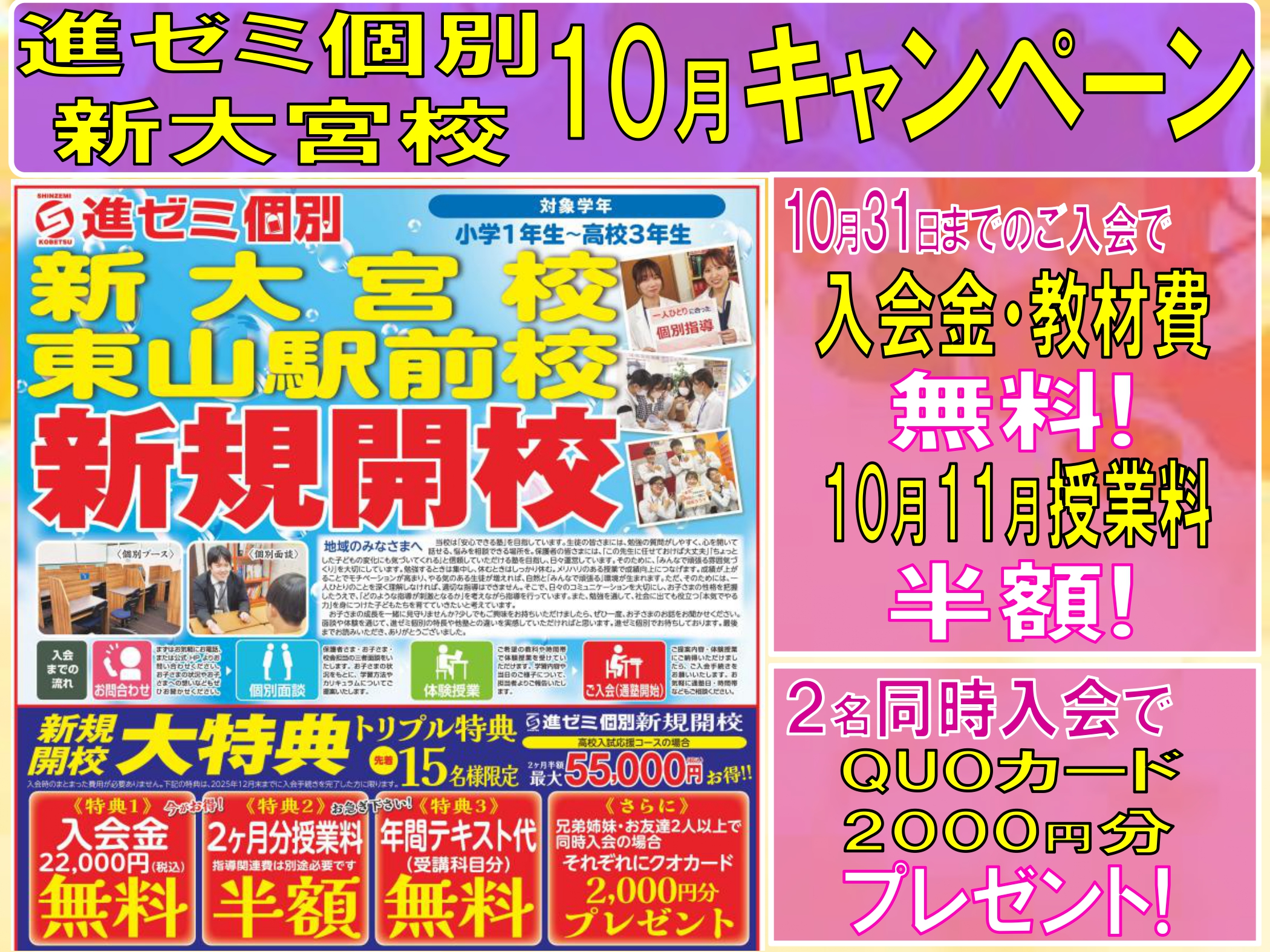 【新規開校】進ゼミ個別 新大宮校(10月末まで!!)