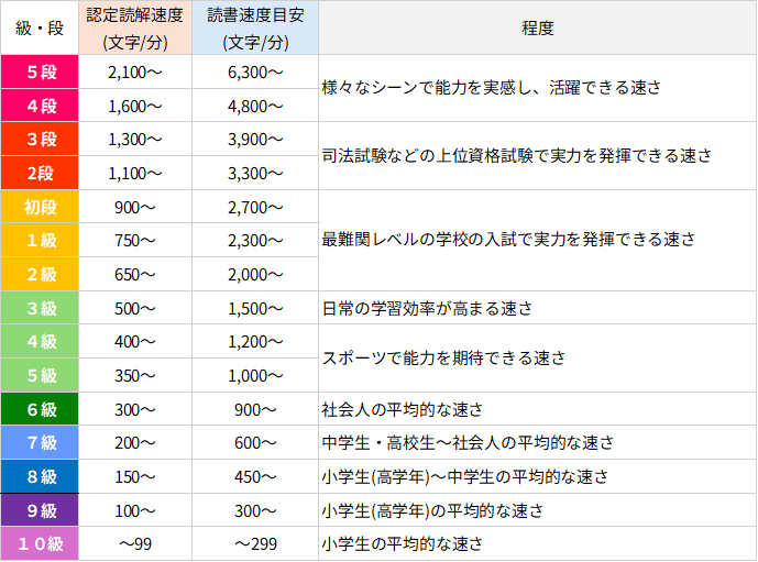 検定の受講が可能です。どの級も履歴書に書くことができるのでぜひ速読解力を鍛えながら検定のチャレンジしてみてください。